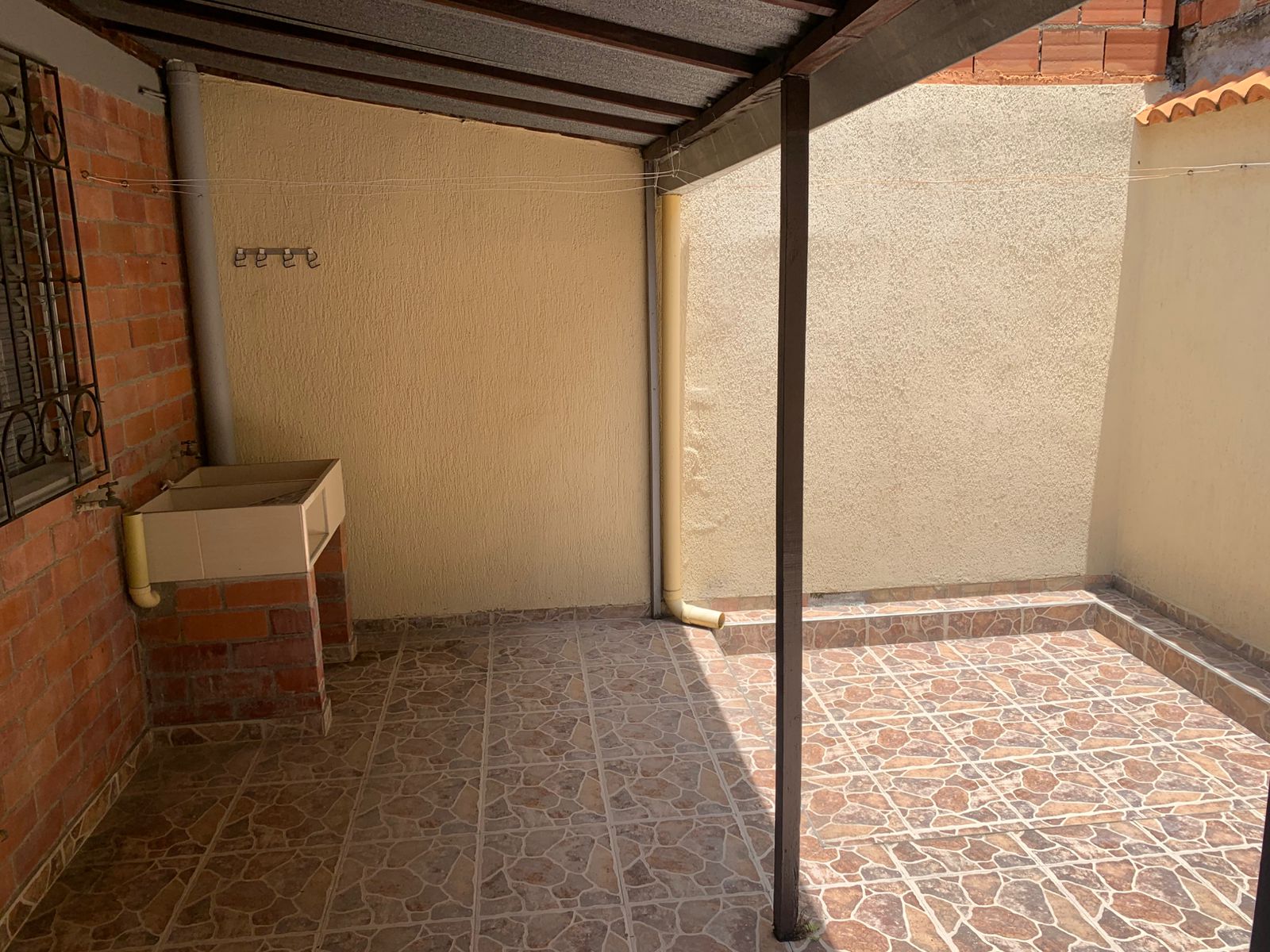 Casa de dos plantas, antejardin con reja, sala, comedor independiente, dos alcobas con closet, cocina tradicional, baño social, baño familiar, patio, zona de oficios, rejas de seguridad, pisos en cerámica y servicio de gas natural.