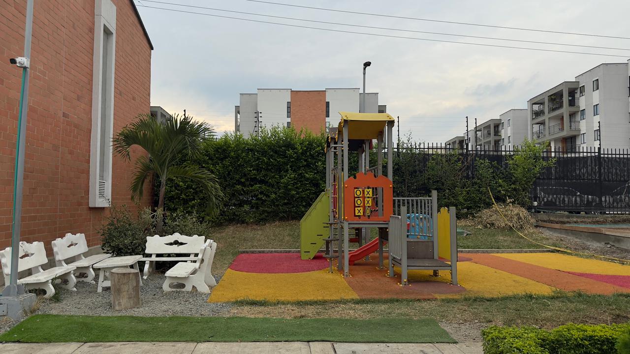 El conjunto cuenta con zona social con piscina, canchas multiples,arenero para niños,juegos infantiles vigilancia 24 horas.