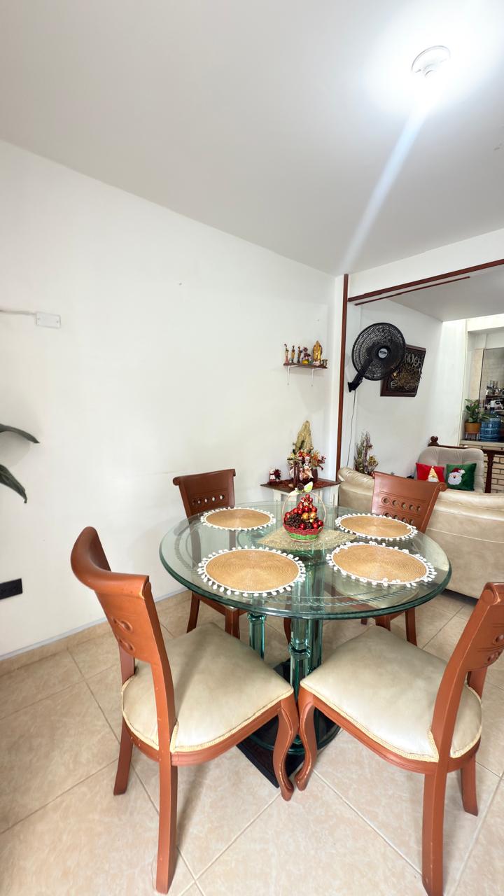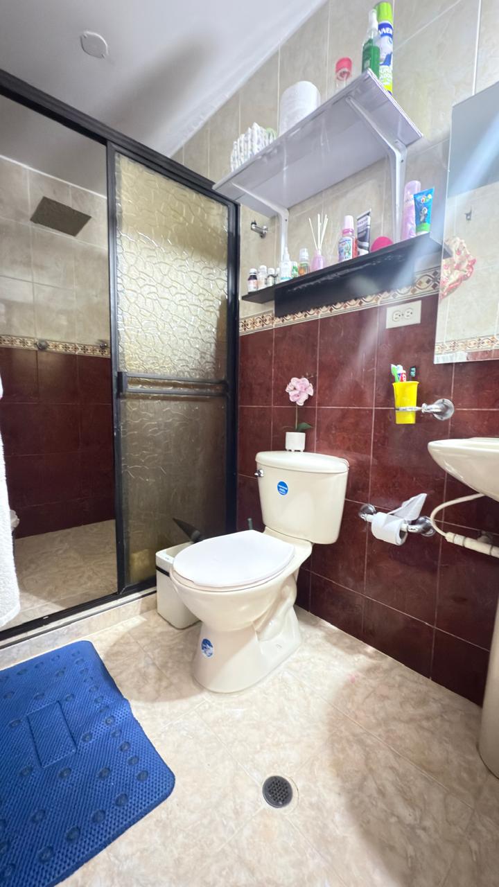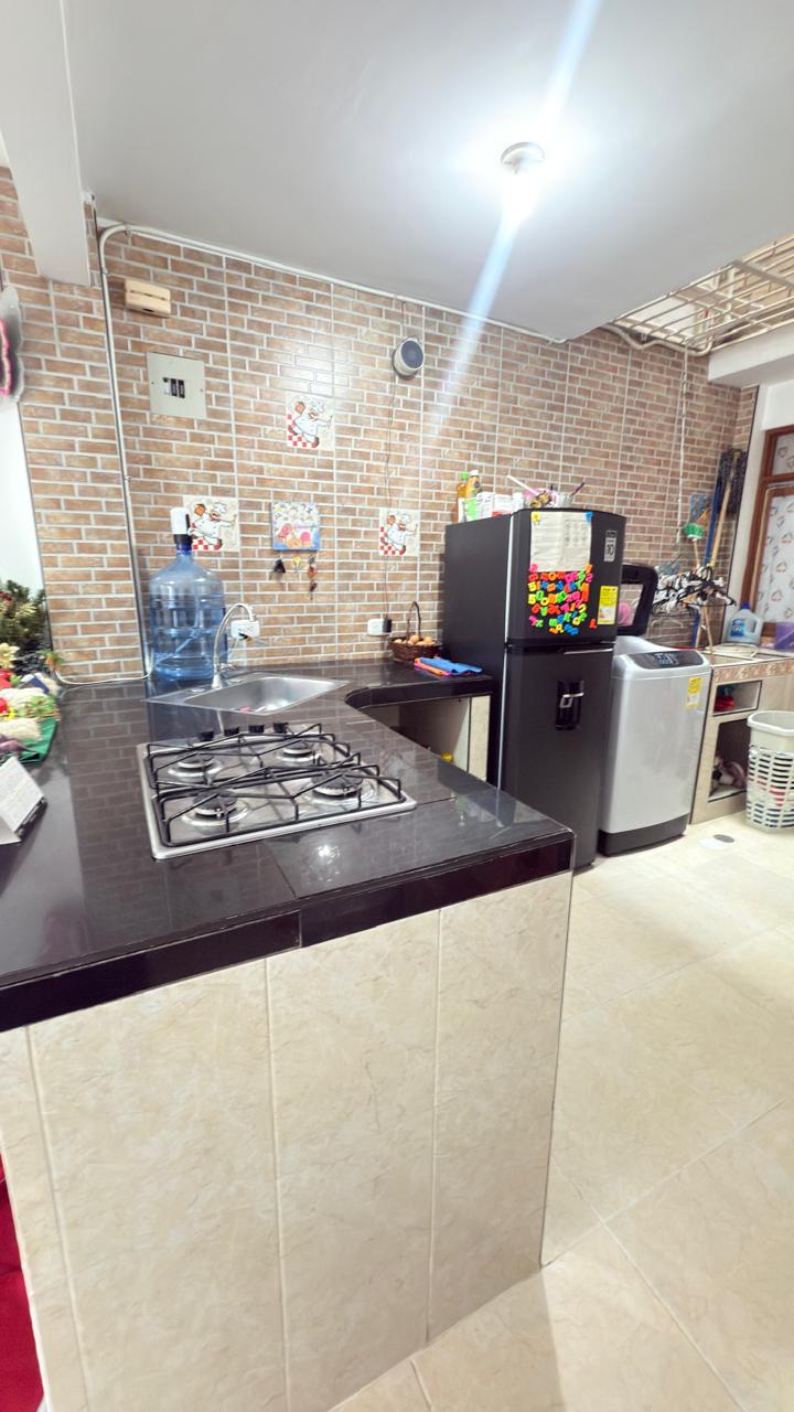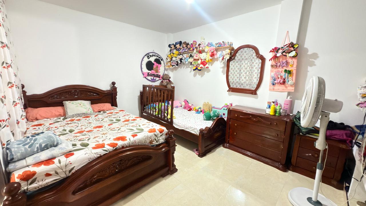 Segundo piso tiene un apartamento con sala comedor,tres habitaciones,cocina con barra americana enchapada,baño familiar.