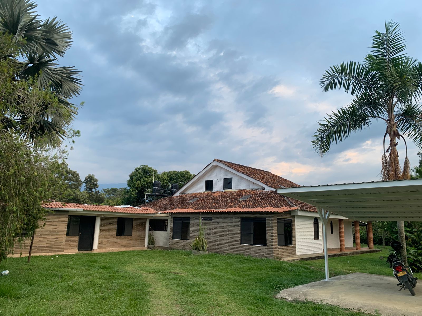 La casa dispone de amplias zonas verdes, parqueadero cubierto para dos vehículos y portón metálico manual, lo que proporciona comodidad, privacidad y contacto con la naturaleza.